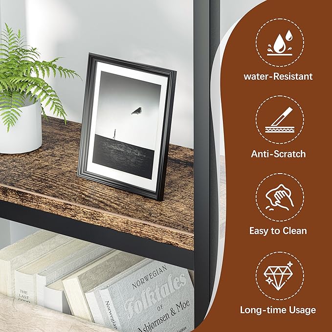 - Elegant and Functional: The rustic brown finish and industrial design give this 5 shelf bookcase storage shelves a modern look that complements any decor. It's not just a storage solution but also a stylish addition to your home.