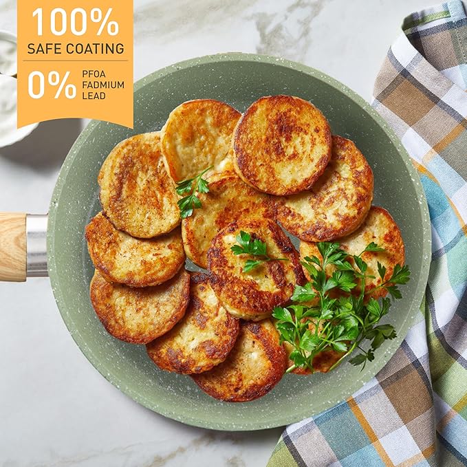 - 𝐓𝐡𝐨𝐮𝐠𝐡𝐭𝐟𝐮𝐥 𝐃𝐞𝐬𝐢𝐠𝐧 𝐟𝐨𝐫 𝐏𝐫𝐚𝐜𝐭𝐢𝐜𝐚𝐥𝐢𝐭𝐲: Anti-scald handles keep your hands safe, while the deeper pan shape allows for versatile cooking techniques, from stir-frying to simmering. Versatile cookware set for various cooking methods
