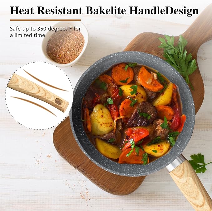 - 𝐓𝐡𝐨𝐮𝐠𝐡𝐭𝐟𝐮𝐥 𝐃𝐞𝐬𝐢𝐠𝐧 𝐟𝐨𝐫 𝐏𝐫𝐚𝐜𝐭𝐢𝐜𝐚𝐥𝐢𝐭𝐲 : Anti-scald handles keep your hands safe, while the deeper pan shape allows for versatile cooking techniques, from stir-frying to simmering. Versatile cookware set for various cooking methods