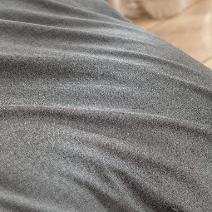 BESTOUCH Duvet Cover Set 100% Washed Cotton Linen Feel Super Soft Comfortable Chic Lightweight 3 PCs Home Bedding Set Solid Dark Grey Super King