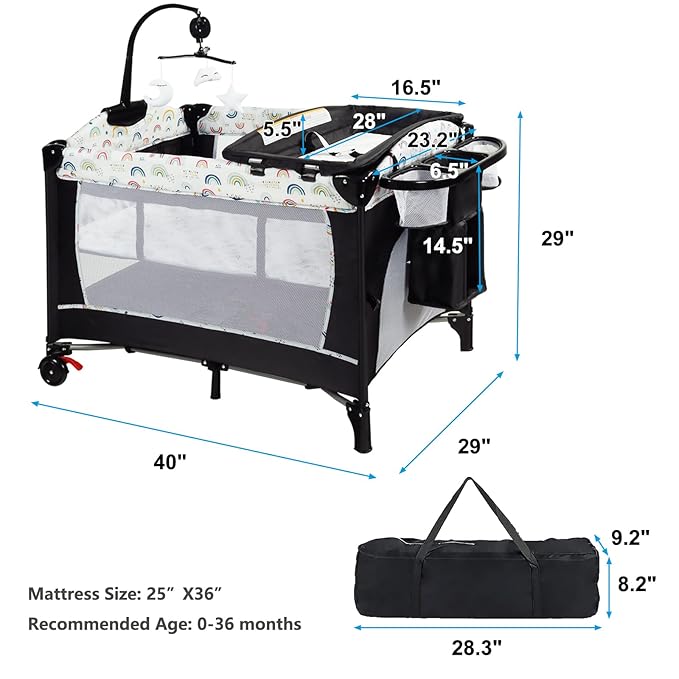 - Simple To Assemble & Fold: Please read our instructions carefully before using the pack n play; The assembly and fold doesn't need any tools; High strength TD cloth; Ideal for baby showers, birthday gifts, Christmas and other holidays