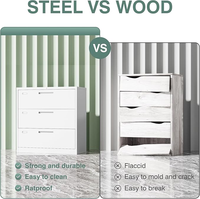 - Large Storage space:3 Drawer wide file cabinet have deep and spacious drawers,H40*W36*D16 inch with adjustable hanging bar can hang A4 size, letter size or legal size hanging file folders to keep your document organized