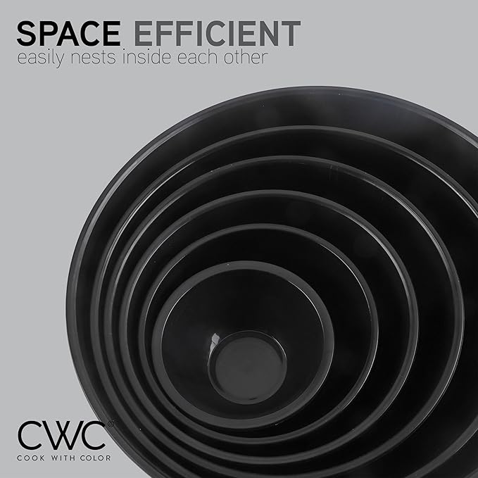 COOK WITH COLOR Mixing Bowls with Lids - 12 Piece Plastic Nesting Bowls Set includes 6 Prep Bowls and 6 Lids, Non Slip Bottom and Embossed Design - Microwave Safe (Black)