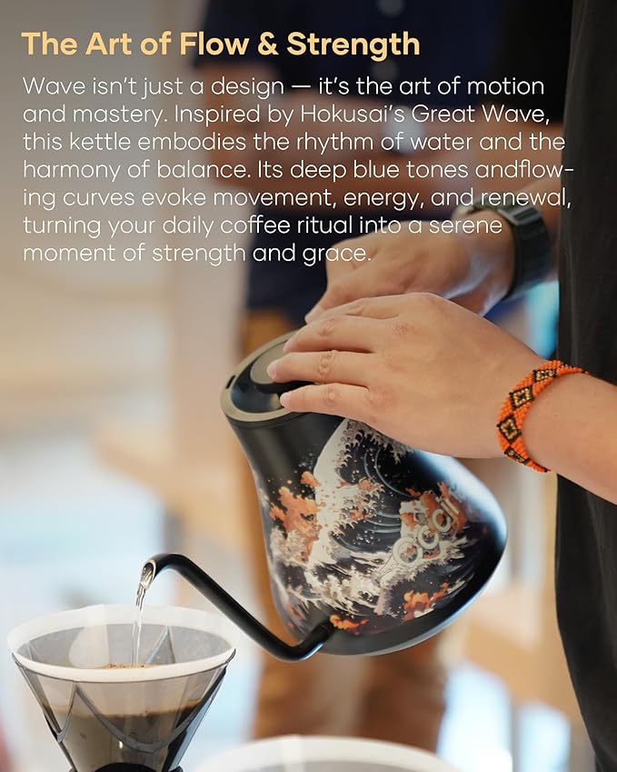 • Majestic Wave Design: Inspired by Hokusai’s Great Wave, Wave blends artistry with precision. A striking design that makes every brew a moment of flow and renewal, perfect for daily rituals or meaningful gifting.