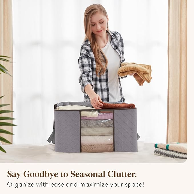 Lifewit 6 Pack Clothes Storage, Foldable Storage and Organization, Storage Bins with Lids, Blanket Storage with Clear Window, Closet Storage with Reinforced Handles for Clothing, Bedding, Light Gray