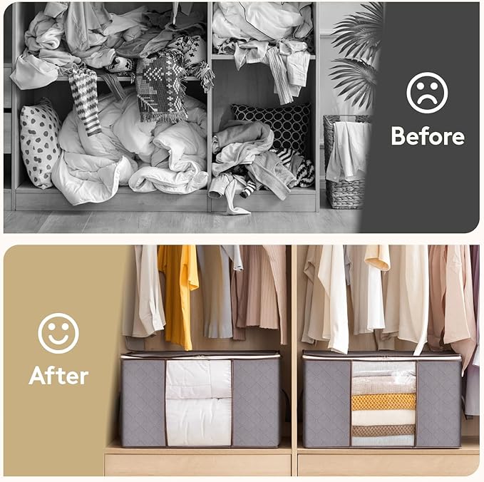 - Save Space: Each clothes storage organizer measures 21.6 x 13.7 x 12.4 inch and has a capacity of 60 L. With its easy-fold design, you can keep your clothes neat and tidy while saving space for storage