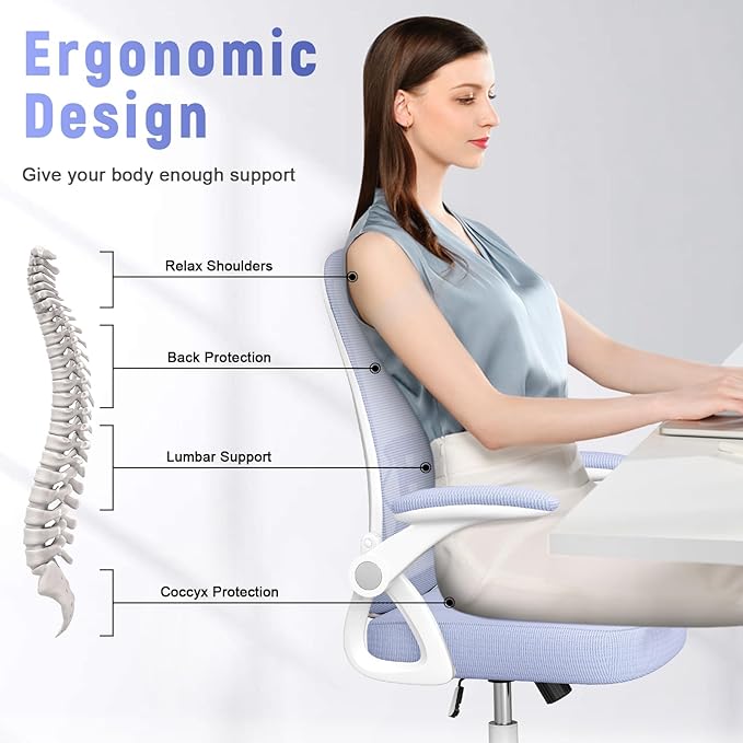naspaluro Ergonomic Office Chair, Mid Back Desk Chair with Adjustable Height, Flip-Up Arms and Lumbar Support, Breathable Mesh Swivel Computer Chair for Home Study Working/Light Purple