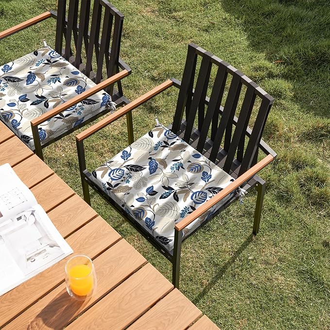 Set of 2 Outdoor Square Chair Cushions 18.5"x16"x2" for Patio, Water Resistant Patio Dining Seat Pads Replacement for Kitchen Garden and Outdoor Furniture Decoration - Breeze Leaves Beige