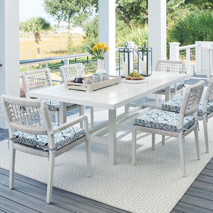 Set of 4 Outdoor Square Chair Cushions 18.5"x16"x2" for Patio, Water Resistant Patio Dining Seat Pads Replacement for Kitchen Garden and Outdoor Furniture Decoration - Boho Geometry Blue