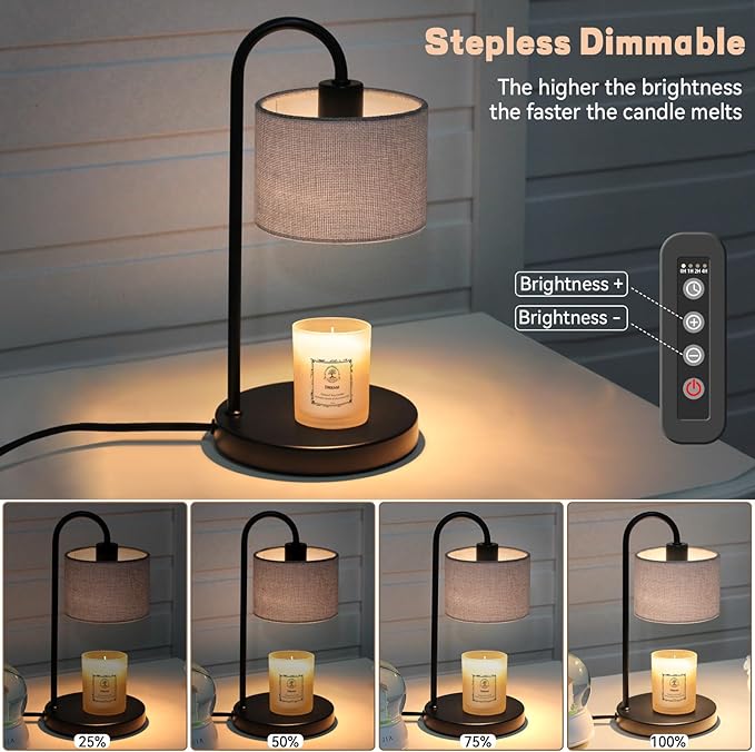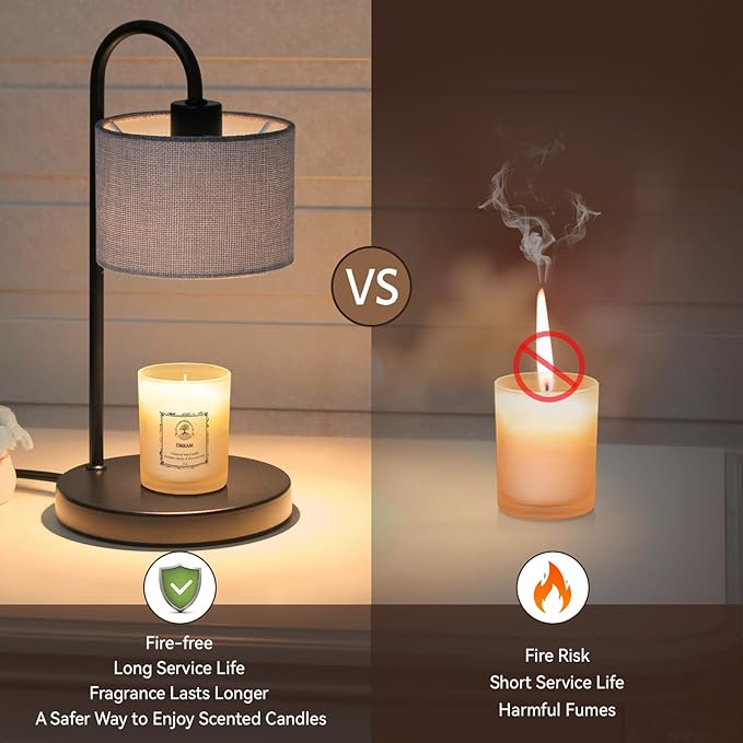 - 【Stepless Dimmable】FINCMY candle warmer lamp supports stepless dimming and you can control the candle temperature by adjusting brightness, thus controlling the melting speed and scent concentration of the scented candle. Compared with traditional burning candle, the candle warmer lamp is no flame or smoke which greatly reduces the risk of fire.