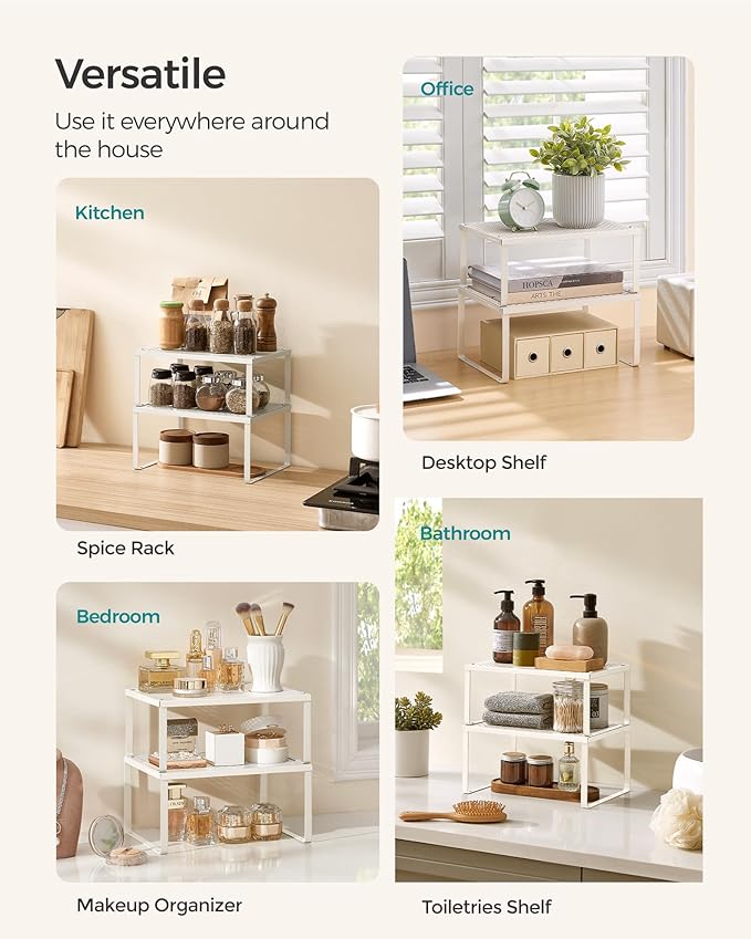 SONGMICS Spice Racks, Set of 4 Metal Cabinet Shelf Organizers, Countertop Organizers, Shelf Risers, Stackable, Expandable, Oatmeal Beige UKCS006K01