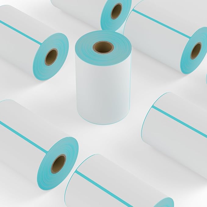 - Direct thermal labels with perforated line and blue background paper, easy to peel off the backing and easy to differentiate.