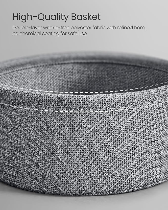- [Quality Fabric Basket] The double-layered polyester fabric basket is visually appealing, crease-free, and free of chemicals, making it safe to use. Its linen-like appearance adds a touch of uniqueness to this round table
