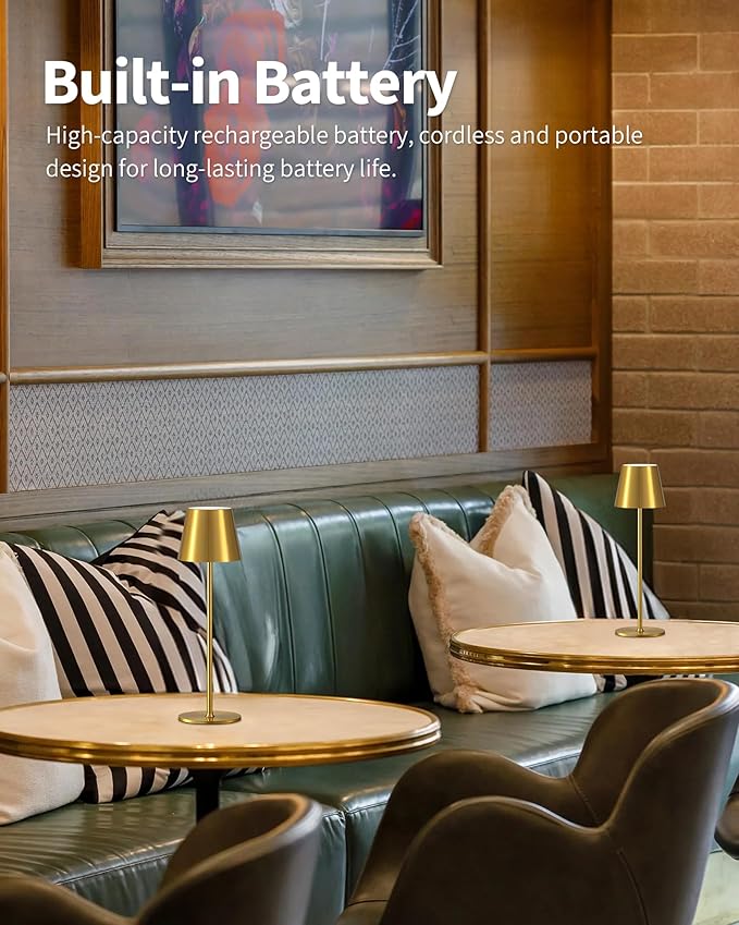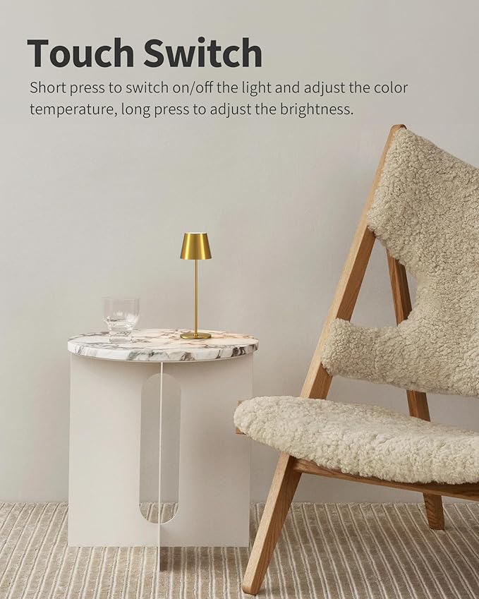 - 【Metal Material】The body is made of metal material with baked enameled surface to prevent scratches and corrosion. The gold/silver color models have electroplated surface treatment, smooth and texture. The lampshade is made of acrylic, good light transmission, not blinding, care for your eyes. The base includes non-slip pads to prevent accidental tipping. Not only for indoor use, also suitable for outdoor or camping.