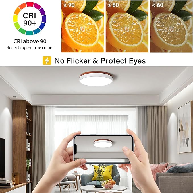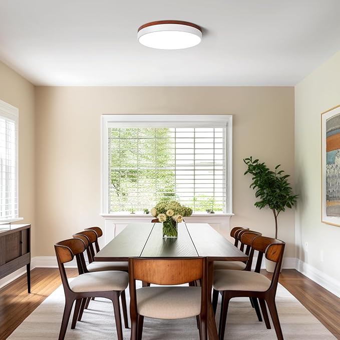 - Low Profile Flush Lights for Ceiling: Consuming only 36 watts while emitting 2296 lumens of bright light, this wood and white ceiling light uses integrated LED technology, eliminating the need for bulbs. Additionally, this LED flush mount light fixture boasts a 90+ color rendering index, reflecting the true color of objects and enhancing visual effects