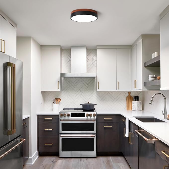 - Low Profile Flush Lights for Ceiling: Consuming only 24 watts while emitting 1430 lumens of bright light, this wood and black ceiling light uses integrated LED technology, eliminating the need for bulbs. Additionally, this LED flush mount light fixture boasts a 90+ color rendering index, reflecting the true color of objects and enhancing visual effects