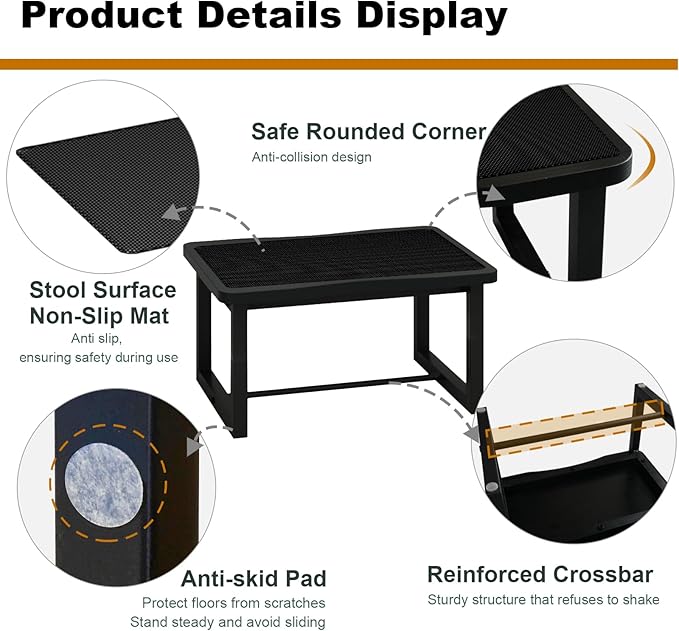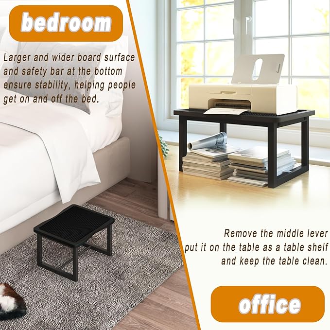- 【Compact & Space-Saving】 – Measuring 15.8” L x 11” W x 8.2” H, this lightweight step stool is easy to store under beds, in closets, or cabinets, ideal for small spaces.