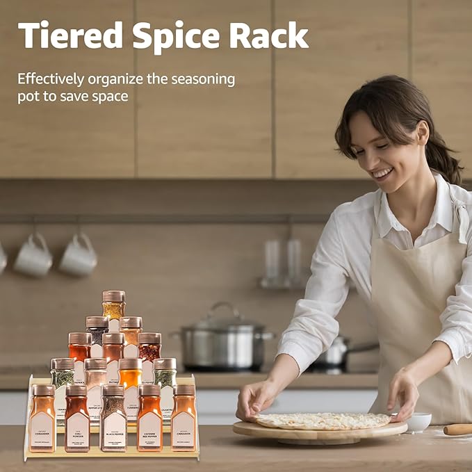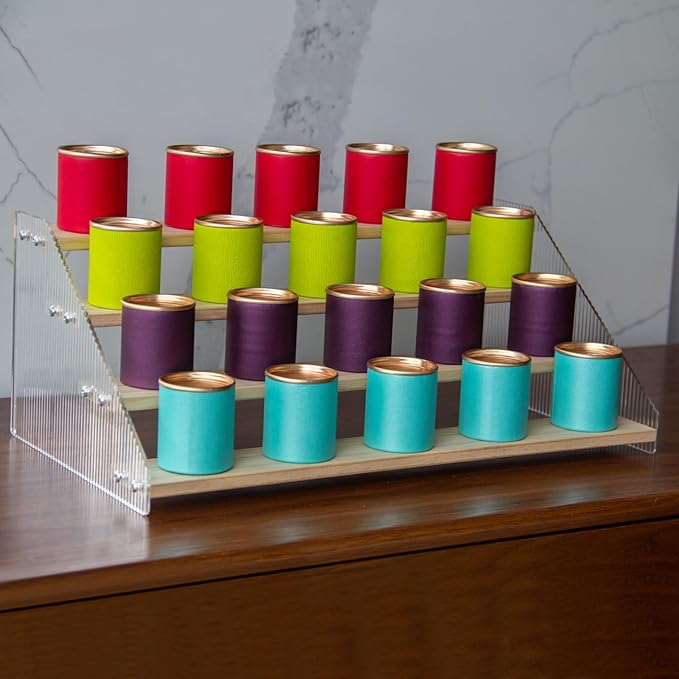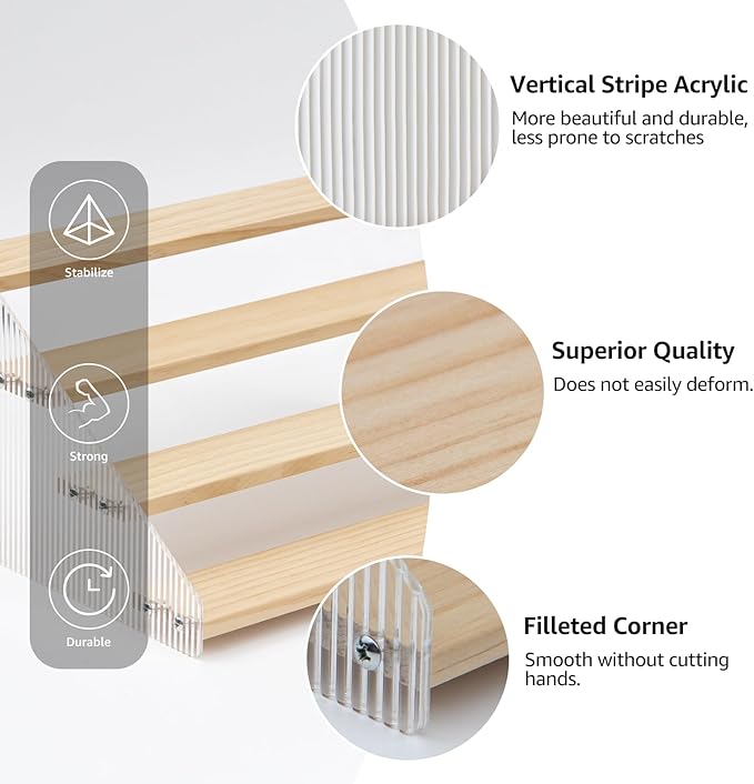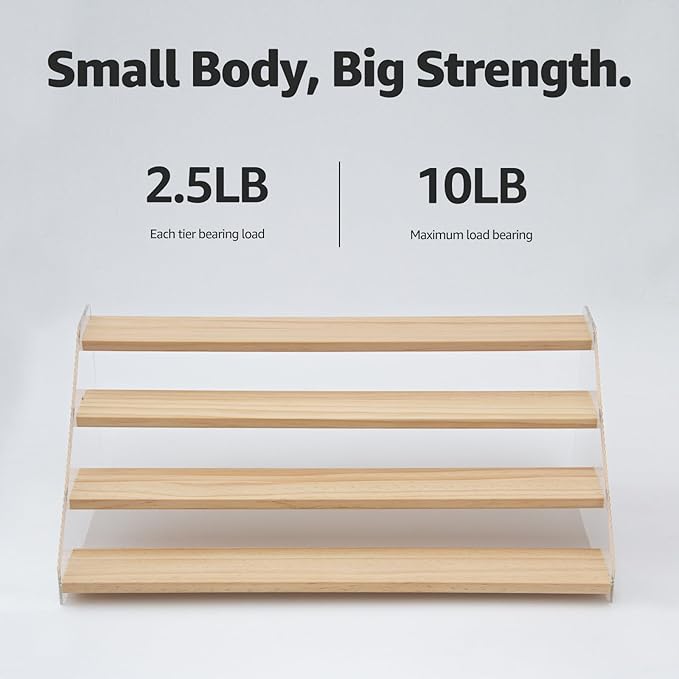 - Elegant & Sturdy: Risers display stands constructed from high-quality pine wood and corrugated acrylic, making it both aesthetically pleasing and fashionable, as well as durable and resistant to deformation, the spice shelf is a beautiful and robust addition to any space