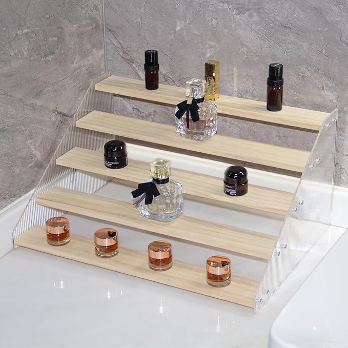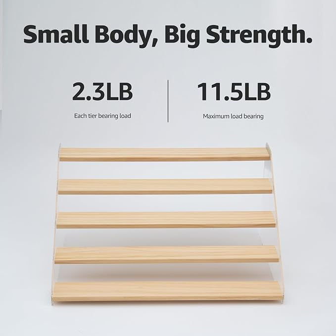 - Elegant & Sturdy: Risers display stands constructed from high-quality pine wood and corrugated acrylic, making it both aesthetically pleasing and fashionable, as well as durable and resistant to deformation, the spice shelf is a beautiful and robust addition to any space