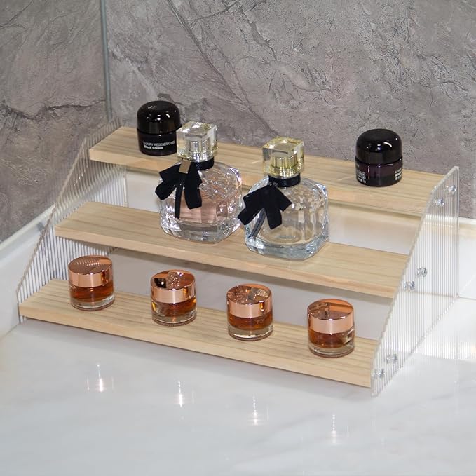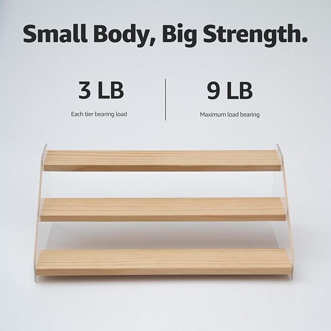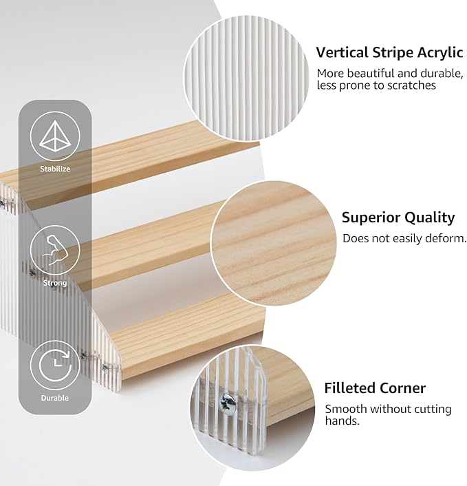 - Elegant & Sturdy: Risers display stands constructed from high-quality pine wood and corrugated acrylic, making it both aesthetically pleasing and fashionable, as well as durable and resistant to deformation, the spice shelf is a beautiful and robust addition to any space
