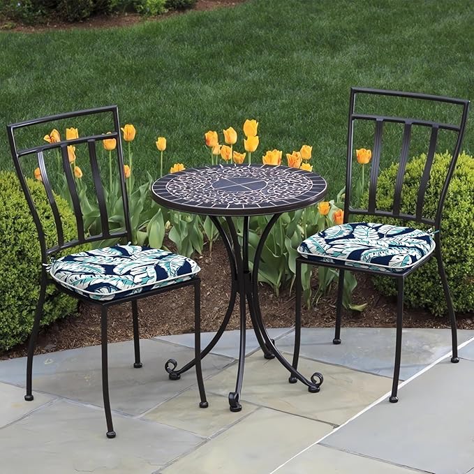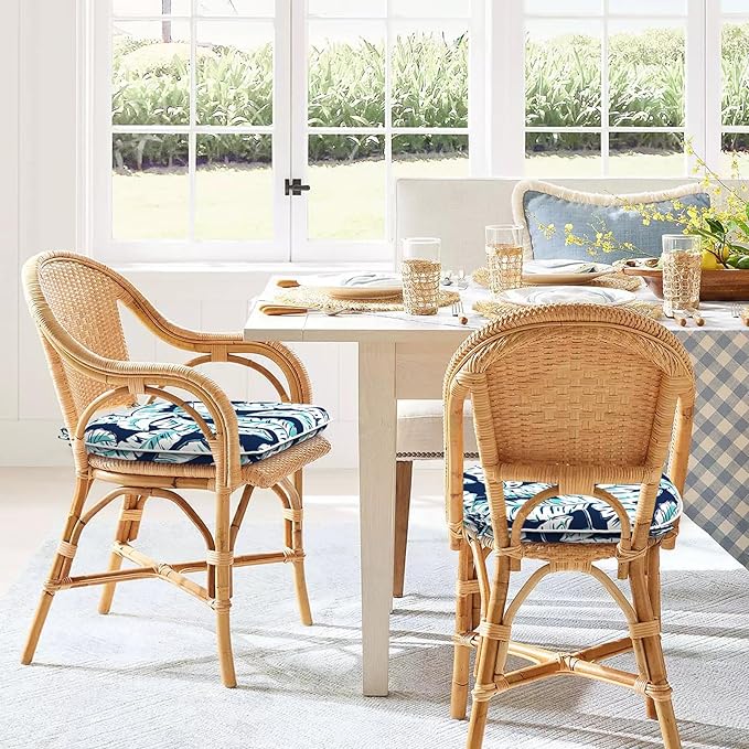 Set of 4 Outdoor Chair Cushions with Ties,Water Repellent Patio Chair Pads 17"x 16" for Outdoor Furniture,Round Corner Seat Cushions for Garden Yard Kitchen Baltic Palms White