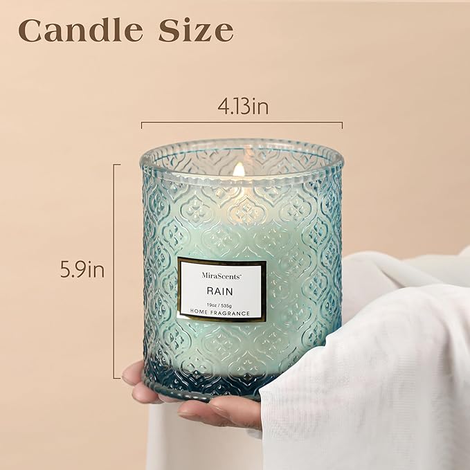 - ☔Refreshing Rain Fragrance - Immerse yourself in the serene essence of rainfall with this 19oz scented soy wax candle, offering a calming and invigorating aroma reminiscent of a refreshing downpour.