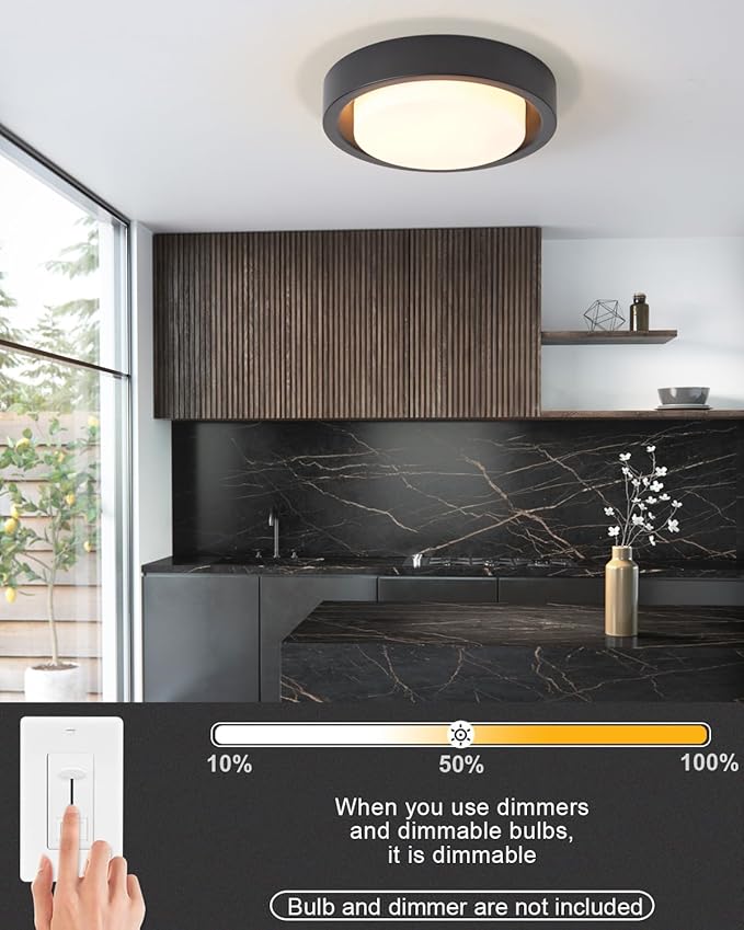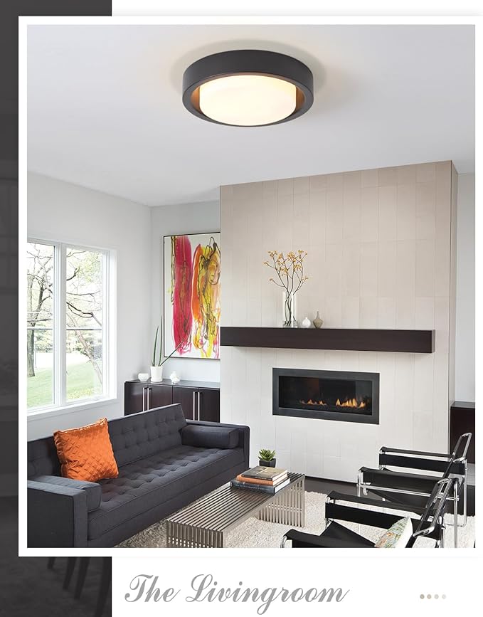 - 【SIMPLE DESIGN】This ceiling light fixture a high-quality metal plate and frosted glass shade, which is durable and non-glare. Its frosted glass shade and black finish complement any decor. Flush mount ceiling lights not only provide you with lighting, but also enhance your sense of living atmosphere.