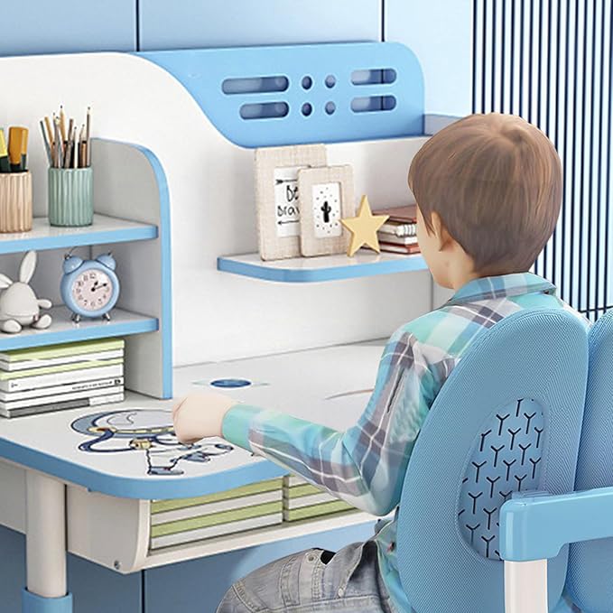 - 【Height Adjustable & Dual Back Support】Adjust the height of the desk and chair according to the height of the child. As the children grow up, keep raising them to achieve a perfect figure. The kid desk chair adopts dual back support design that, which can well support the kid's back and waist. The kids desk chair fits kid's body curves and help kids develop good sitting habits. The back of the chair is separated, which is designed to wrap the body better and give support to the waist.