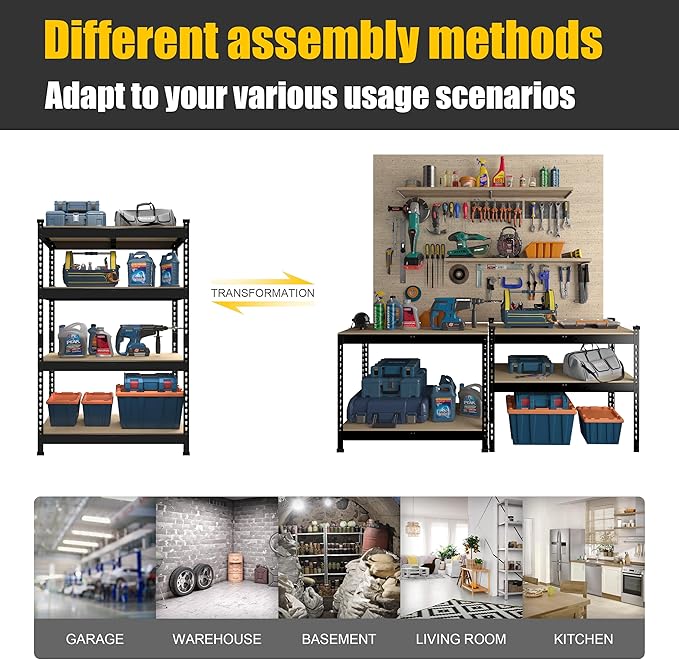 - 【EASY TO ASSEMBLE 】: Due to the boltless design, it is easy to assemble this heavy duty storage rack by lightly pressing it even with your hands or a rubber hammer. Assembling takes approximately 10 minutes. All hardware and the Installation Manual are provided, including the rubber hammer