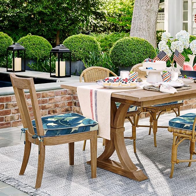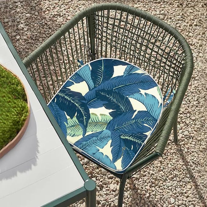 Set of 2 Outdoor Chair Cushions 19"x19"x2",Water Repellent Patio Seat Cushion with Ties and Removable Covers,Dining Chair Cushions for Indoor Kitchen and Patio Furniture,Swaying Palms Blue