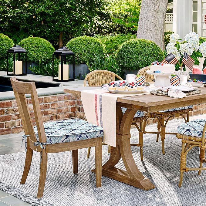 Set of 4 Outdoor Chair Cushions 19"x19"x2",Water Repellent Patio Seat Cushion with Ties and Removable Covers,Dining Chair Cushions for Indoor Kitchen and Patio Furniture,Boho Geometry Blue
