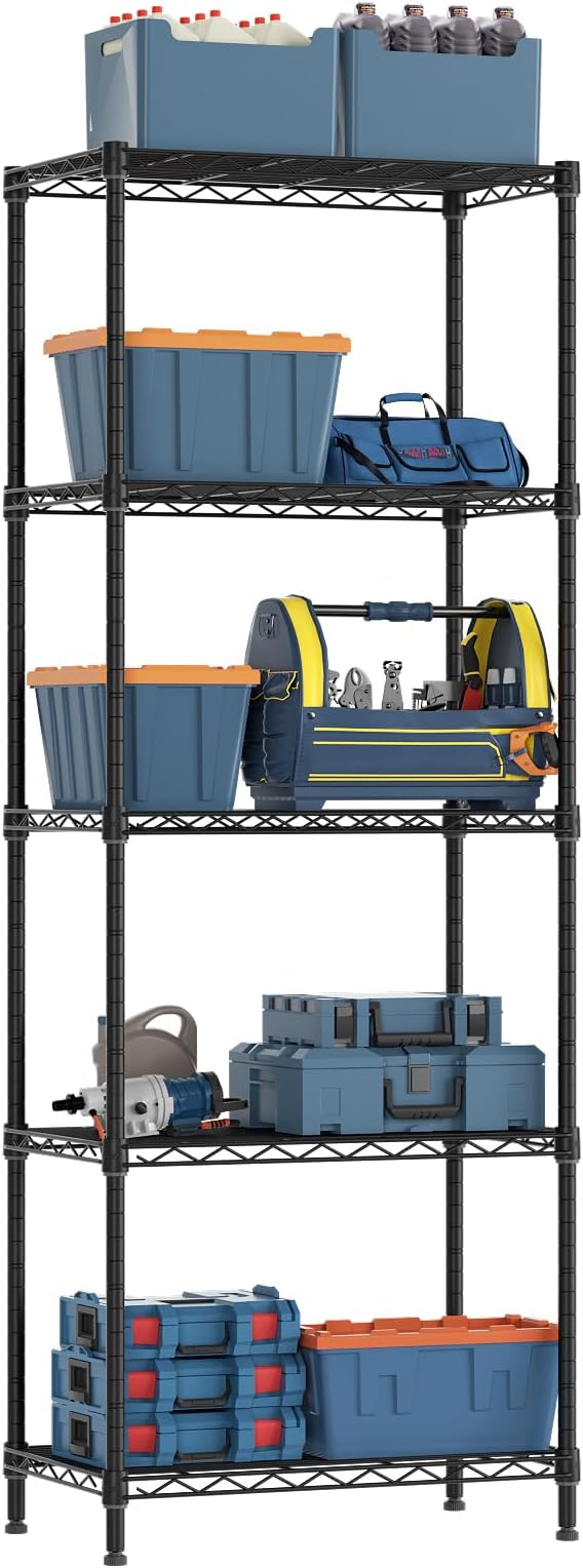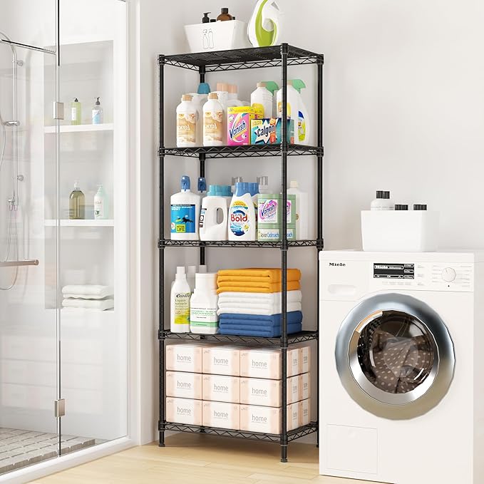 5 Tier Adjustable Storage Shelves Heavy Duty Metal Utility Shelf 750LBS Capacity Wire Shelving Unit Organizer Rack for Home Kitchen Office Bathroom Pantry Room 12" D x 22" W x 59" H Black