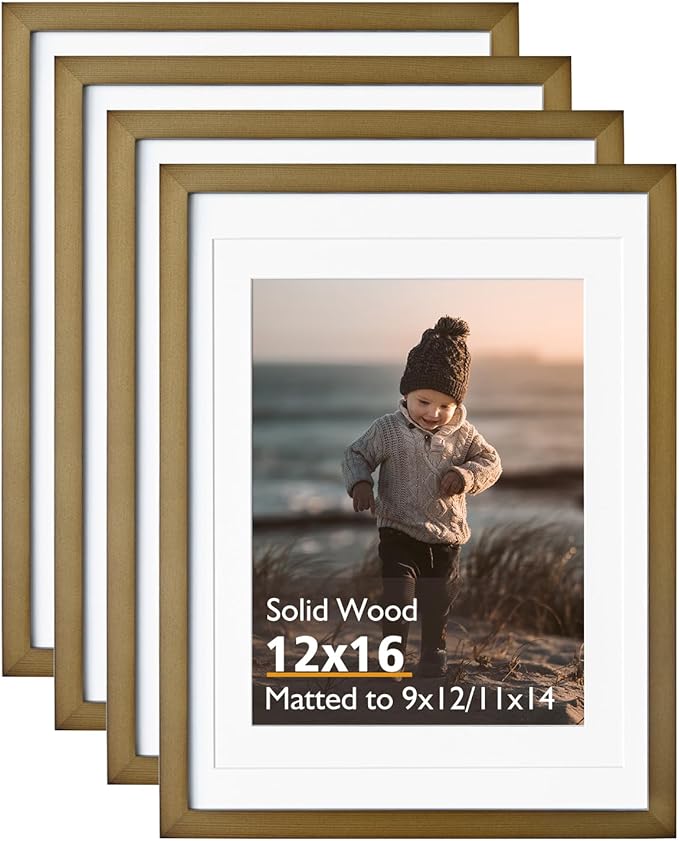 - SOLID WOOD: Kinlink 12x16 photo frames are fitting for standard pictures 11x14/9x12 with mat and standard pictures 12x16 without mat. These 12 x 16 frames are made of light weight solid wood, with transparent, non-toxic acrylic glass front that gives a clear view of your pictures and preserves your precious memories as well. It is worth noticing that remove the protective film on the glass before use.