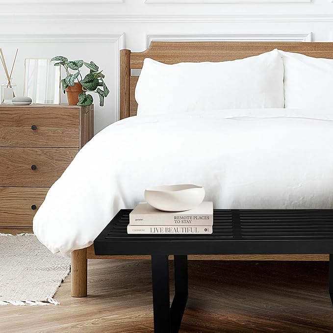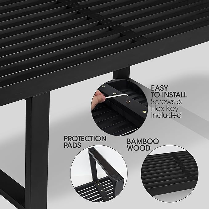 Bamboo Nelson Slat Wooden Bench, Small Wood Benches for Entryway, Living & Dining Room, Kitchen, Bedroom, Bathroom, Hallway, Front Door, for Indoor & Outdoor Patio Use, Mid Century Modern Decor