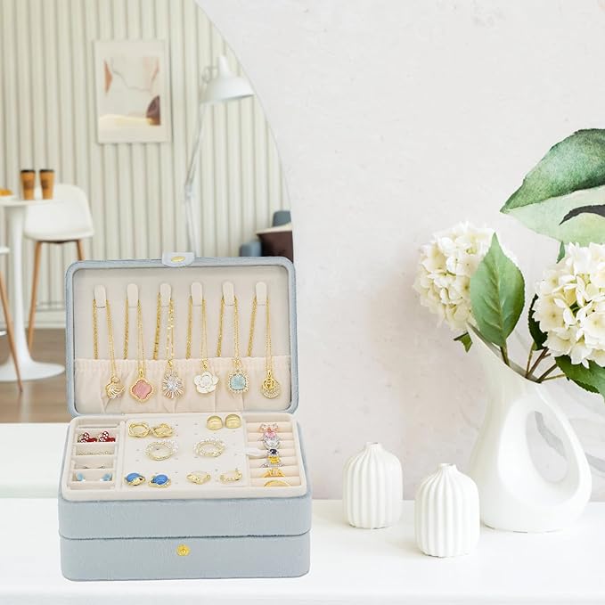 - JEWELRY PROTECTION & STORING IN ZONES: This travel jewelry box can keep your jewelry organized and prevent your necklaces from tangling. The jewelry box displays your jewelry neatly and stylishly, which can better classify jewelry. No more messy, damaged or misplaced. No more struggling to find where your matching pieces are everyday. Gets your daily dressing up quicker and easier.