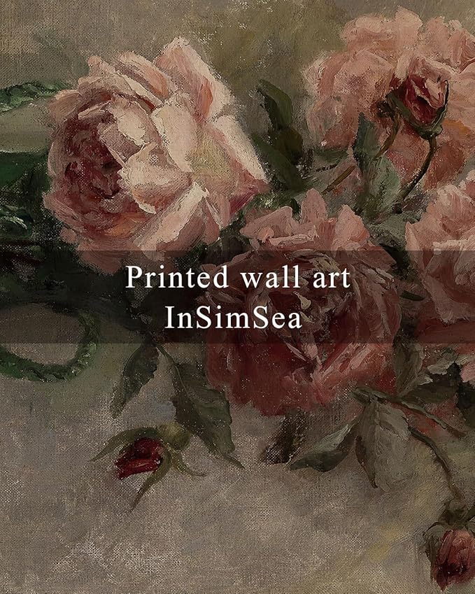 InSimSea Framed Wall Art for Living Room Flower Wall Art Home Decor Roses in Vase Vintage Paintings Large Canvas Prints Botanical Prints Mid Century Modern Decor Farmhouse Bedroom Wall Decor 16x24in