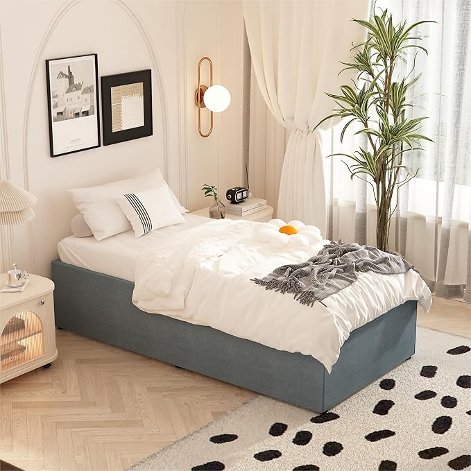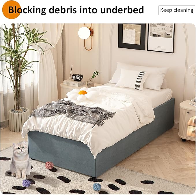 - Bed skirt Included: Twin size bed frames with fabric cover, hide the under bed space and beautify the bedroom. The velcro design makes it easy to store items and prevents dust from getting under the bed.