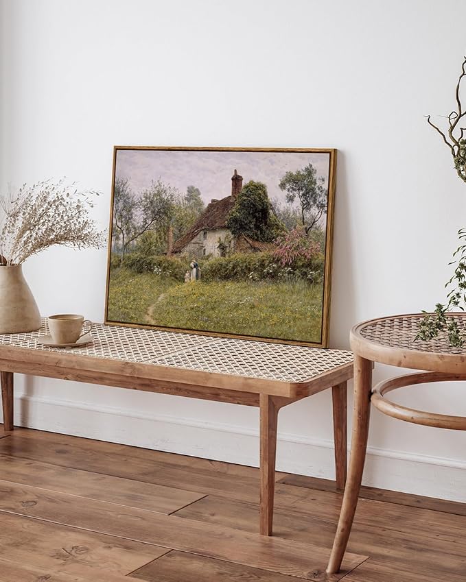 InSimSea Framed Canvas Wall Art Vintage Decor, Old Cottages Countryside Large Canvas Wall Art, Rustic Farmhouse Hanging Wall Decor for Bedroom Living Room Bathroom, 20"x30"
