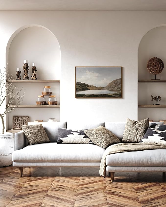 InSimSea Framed Canvas Wall Art Vintage Decor, Lakeside Nature Scenic Wall Decorations for Living Room, Large Prints, Wilderness Country Farmhouse Wall Art, Bathroom Art Wall Decor, 20"x30"
