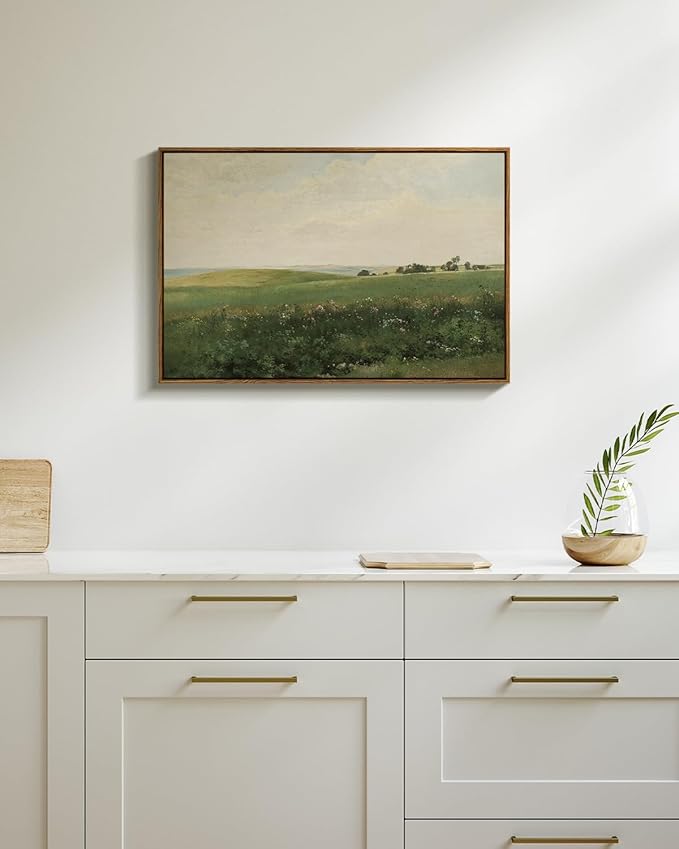 InSimSea Framed Canvas Wall Art Vintage Decor, Farmhouse Decor, Vast Grassland Landscape Paintings, Large Prints, Scenery Wall Decoration for Living Room Bedroom Bathroom Home Decor, 20"x30"