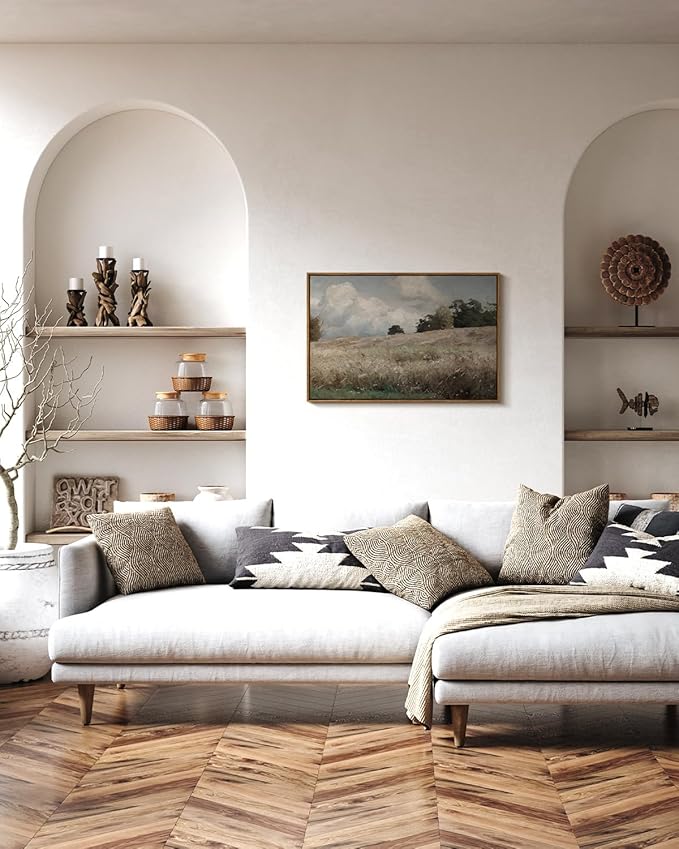 - Classical Wall Art Decor : Elevate your space with the captivating allure of field scenery framed artwork. These exquisite pieces of art bring the serene beauty of open fields and picturesque landscapes right into your home. The colors and brushwork create a tangible sense of depth, inviting you to immerse yourself in the peaceful vistas they portray