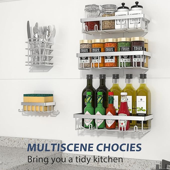 - 5 PCs Large Storage Shower Caddy: The bathroom shower organizer set comes with 3 Silver wall shower caddies, 1 soap holders, 1 toothbrush holder and 5 adhesives. The shower storage shelves can store all of your bath supplies