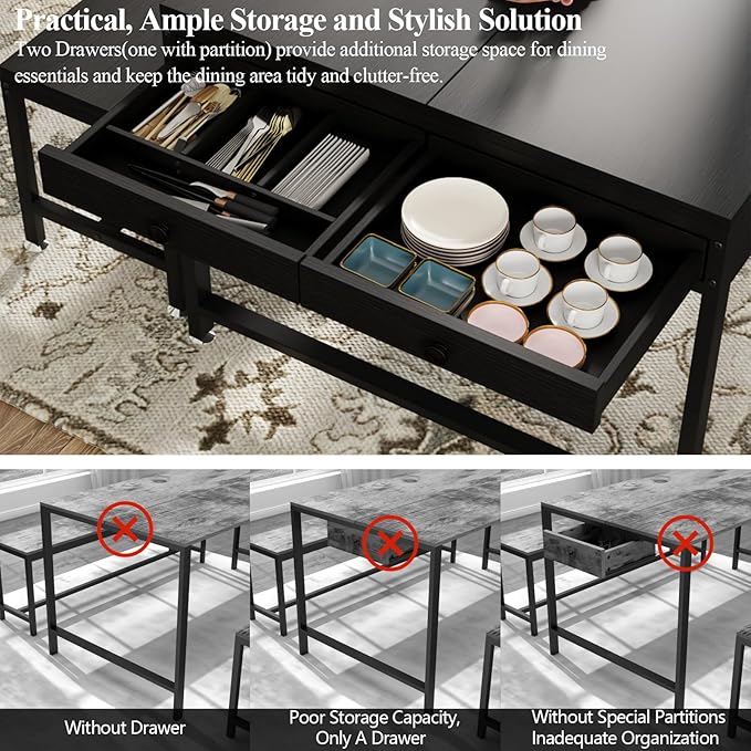 - 【Why Loomie Dining Table】It's a perfect choice for the centerpiece of any dining room. It provides much needed support to perform a complete dining or gathering party.The table is a sophisticated design that adds character to the decorative aesthetic of the kitchen or dining room palette. Saves a whole lot of space while offers ample spacious storage space and it's durable due to its compact yet versatile design and sturdy materials. Seamlessly blends functionality, aesthetics and durability.