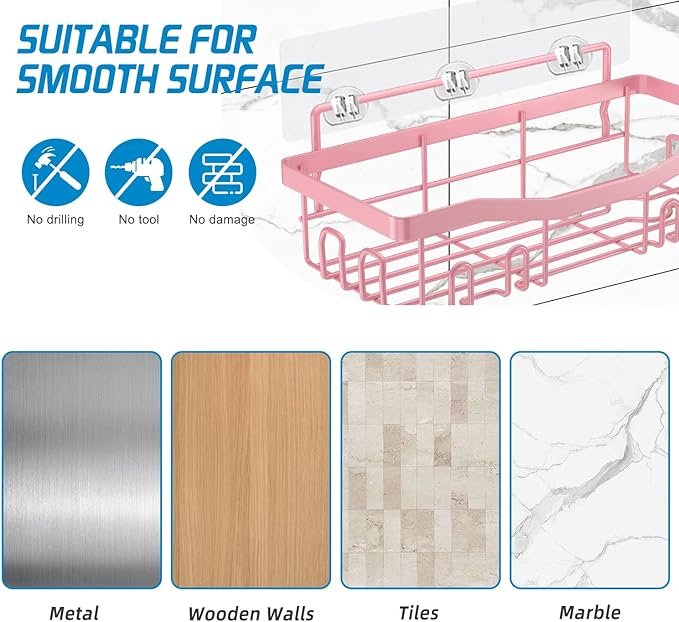 - Suitable for All Smooth Wall:Shower Caddy Basket Shelf is easy to install, no drilling and will not damage the wall