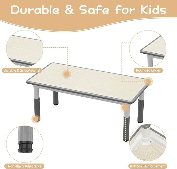 - 【Safe & Sturdy Material】Our toddler tables and chairs are CPC and CE certified. The toddler table and chair set is made of non-toxic and environmentally friendly particle board and PP material, sturdy, durable, smooth, without any burrs. Rounded table corners keep the child safe. Adjustable non-slip table and chair feet help the table and chairs stand stable on the ground.
