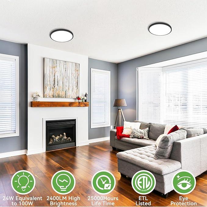 - [High Performance,Low Energy] Our integrated LED ceiling lamps eliminate the need for bulbs. With just 24W, they produce 2400 lumens of brightness at 110V, equivalent to a conventional 200W four-bulb light (40W each). Enjoy up to 90% energy savings, reducing electricity usage and minimizing lamp replacements (Non-dimmable)