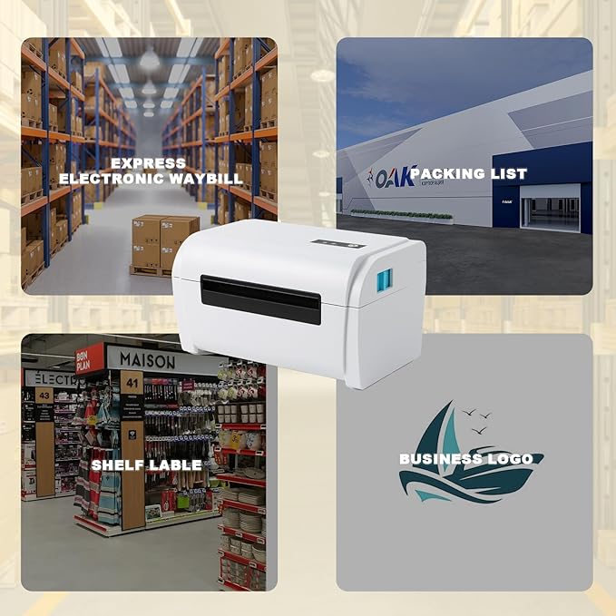 - Wide range of applications: Desktop label printers are suitable for label printing on a variety of platforms, including UPS, USPS, FedEx, eBay, DHL, ORDORO, Amazon, ShipStation, Etsy, Shopify, Paypald, etc. The printing width can be adjusted through the internal guide rails of the printer. Print shipping labels, barcode labels, logo labels and more
