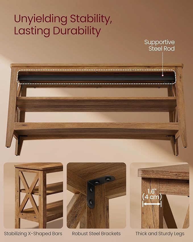 VASAGLE, Entryway Storage Bench, 2-Tier Shoe Rack, 11.8 x 39.4 x 18.9 Inches, Holds up to 600 lb, Farmhouse Style, for Living Room, Bedroom, Honey Brown ULSB153K41