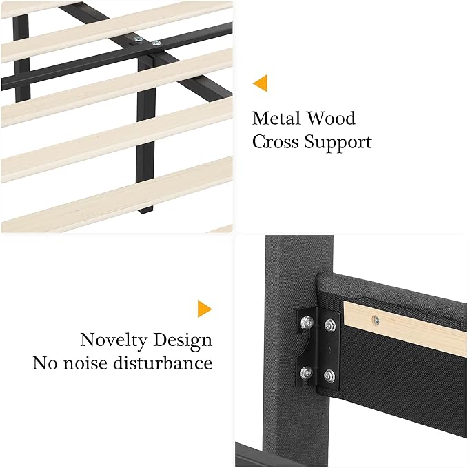 - 【Adjustable Headboard Height】The headboard can be adjusted between 41.73 and 47.63 inches, accommodating mattresses between 6 and 12 inches in height. This bed frame complements a variety of decor styles.