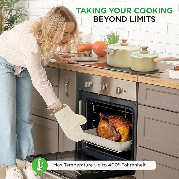 - USER-FRIENDLY DESIGN - Embrace eco-conscious cooking with our food-grade, user-friendly kitchenware. This nonstick pots and pans set is thoughtfully constructed for use on gas, electric, ceramic, and induction (excluding the small egg pan and milk pot) cooktops.